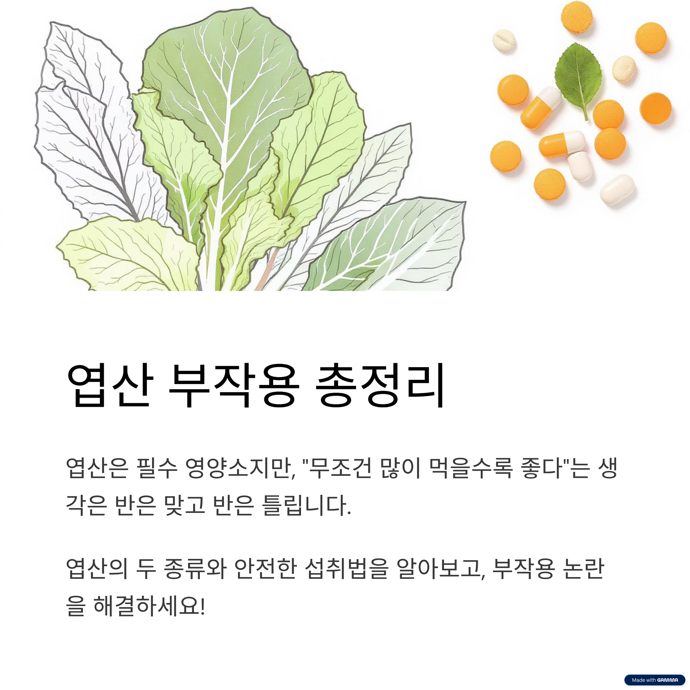 오늘은 폴레이트와 폴릭산의 차이부터 최근 논란이 되는 엽산 부작용, 그리고 가장 안전한 섭취 방법까지 낱낱이 파헤쳐 드립니다! ✨